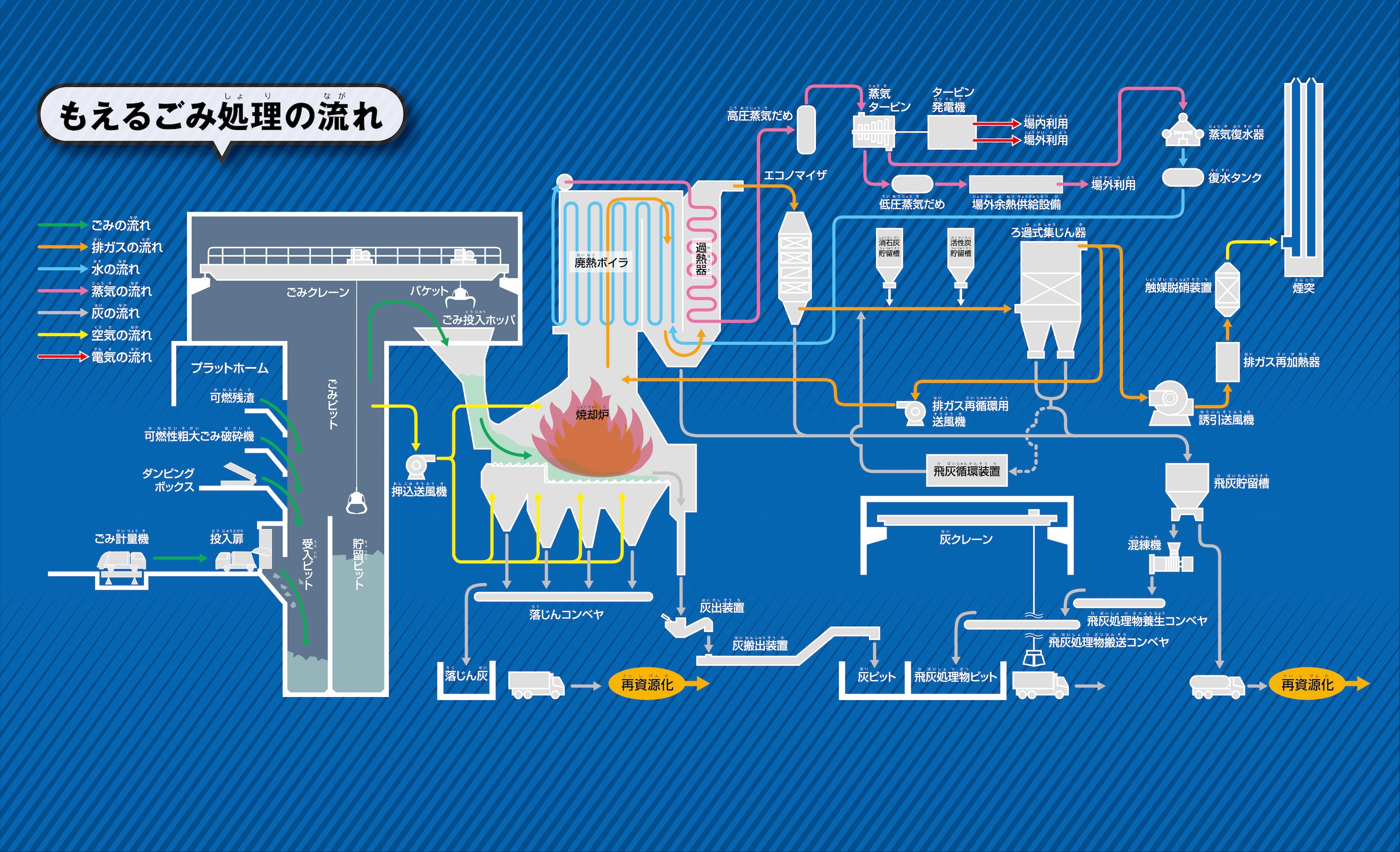 もえるごみの処理の流れ