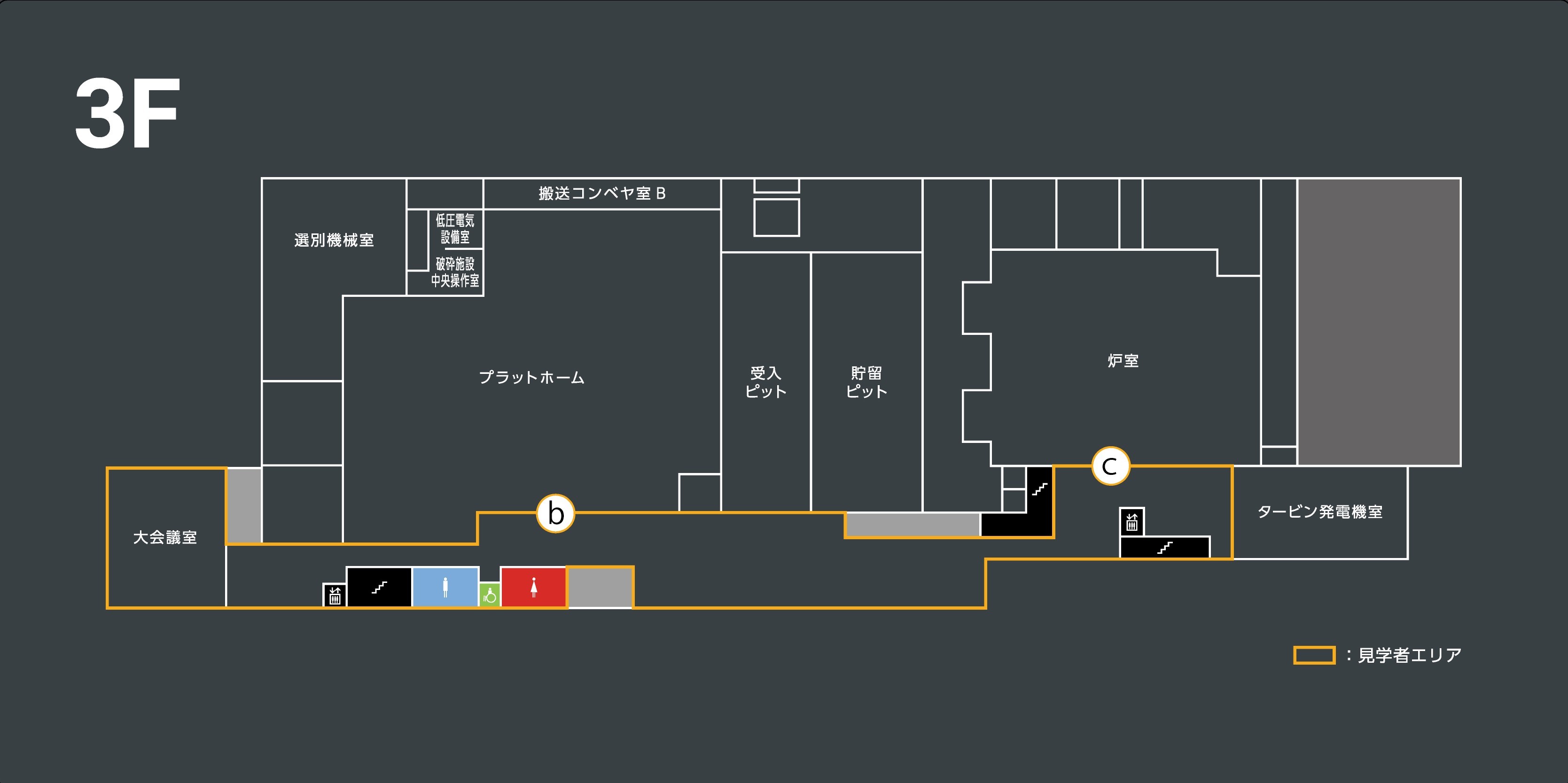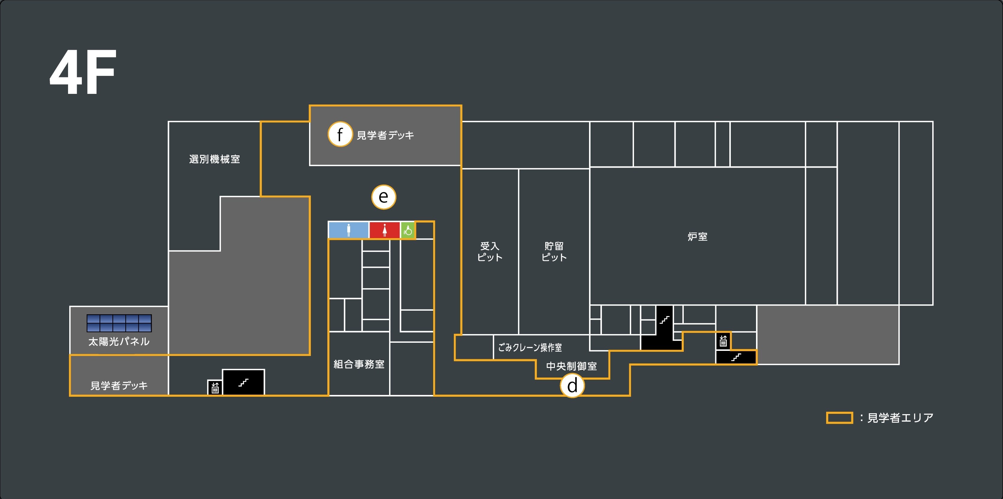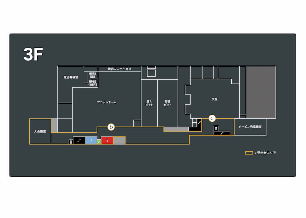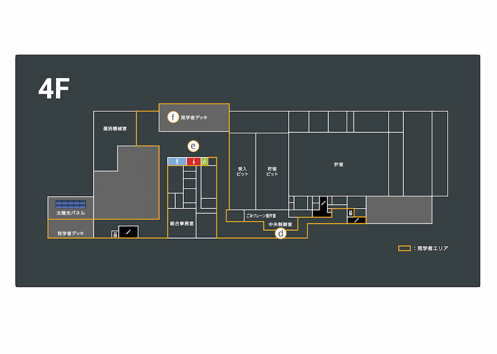 - 見学の際は、来場者出入口を利用してください
