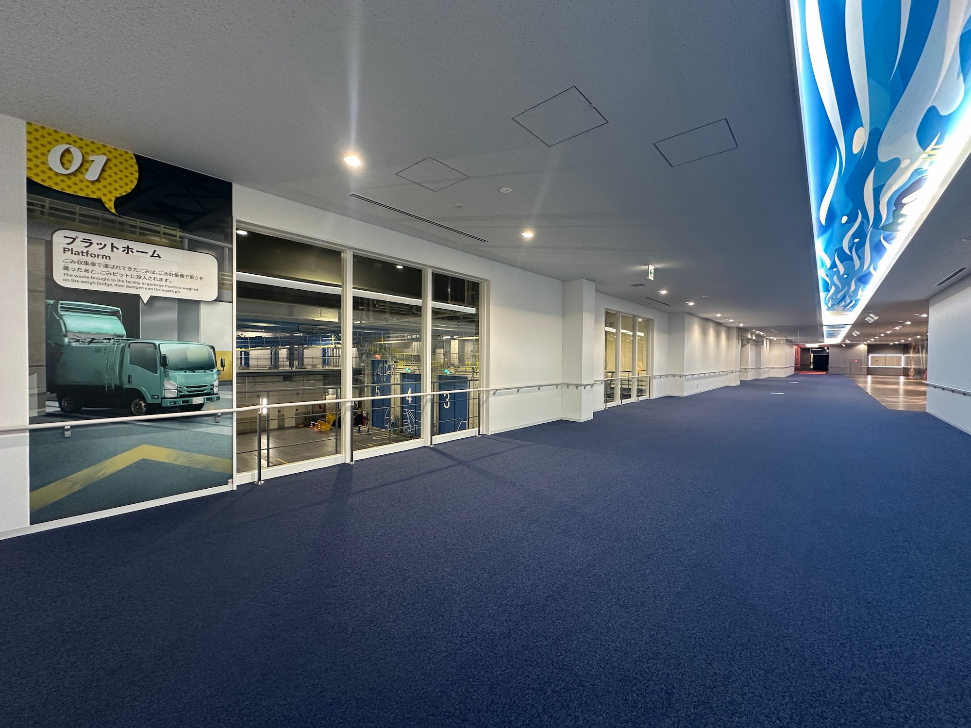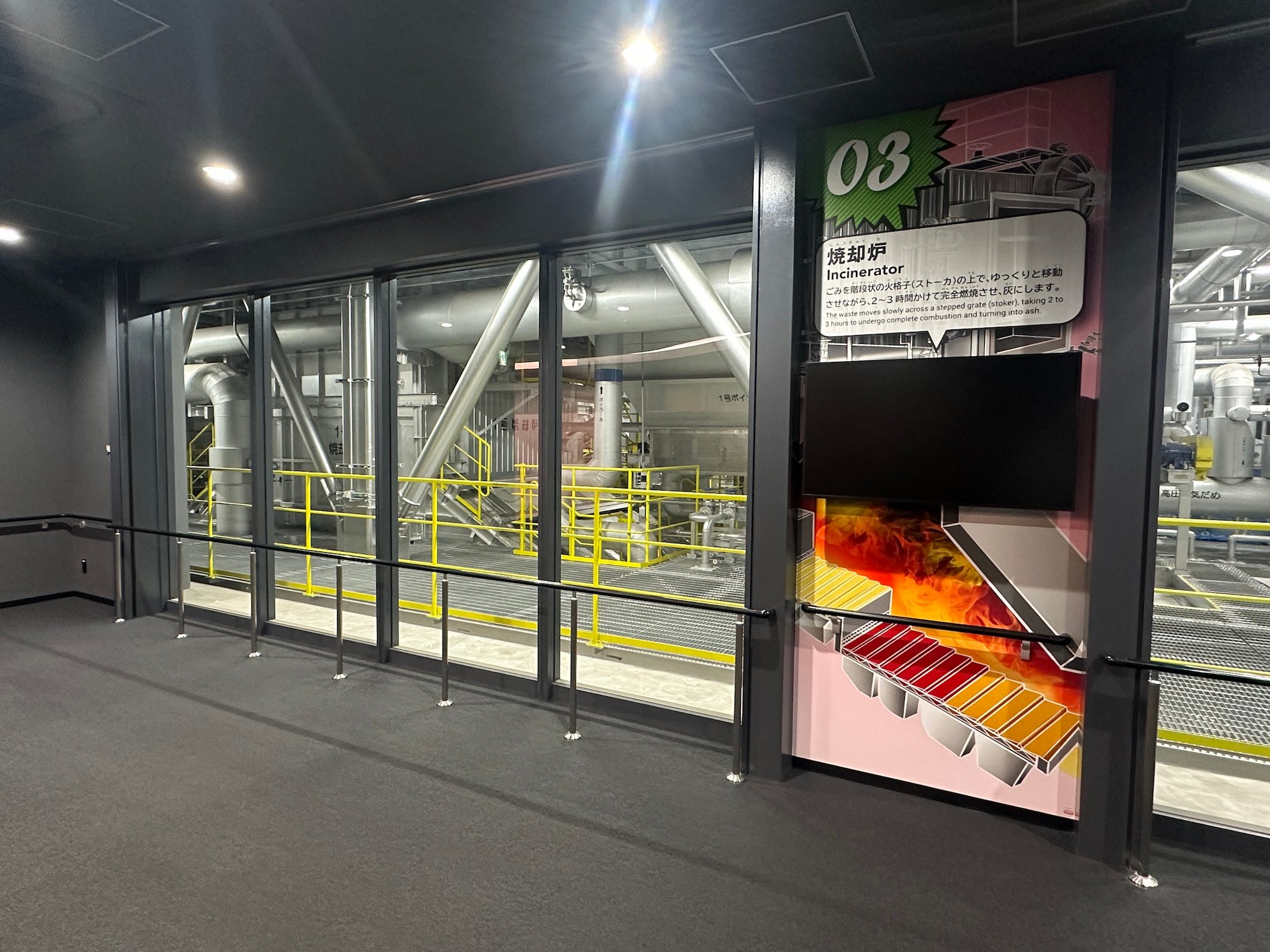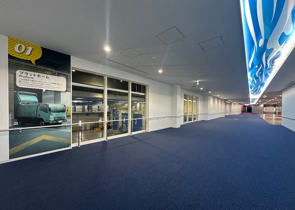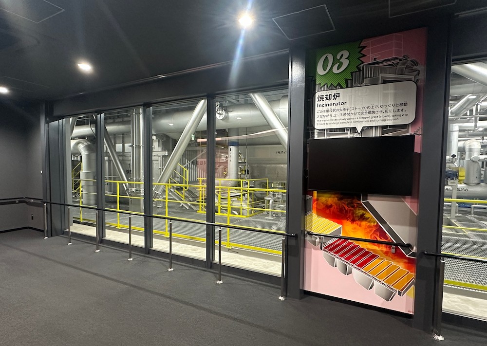 映像による施設紹介、見学窓からの工場見学、模型やパネル展示による環境学習